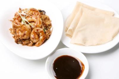 One of our signature dishes! shrimp stir-fried with cabbage, wood ear mushrooms, green onion, egg and vermicelli, Served with thin, homemade pancakes and hoisin sauce.